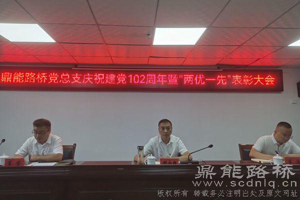 7月20日,鼎能路桥党总支召开”两优一先“表彰大会,庆祝中国共产党成立102周年,表彰优秀共产党员、优秀党务工作者和先进基层党支部。公司党总支书记、董事长邓永强出席会议并讲话。会议由党总支委员、财务总监蹇荣主持。