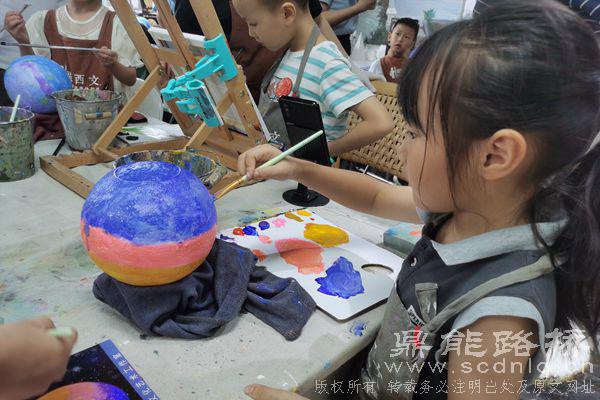 活动期间,专业油画老师向大家介绍了油画的绘画技巧、颜色调配等知识,引导孩子们勇于下笔、用笔抒情。看着孩子们手握画笔,在“星球”上涂涂画画,释放自己天马行空的创意和想象力,尽情翱翔在绘画的天空中,释放天性,体验童真的乐趣,为想象添彩。