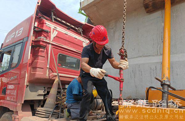 据了解,在吊装作业前,路桥公司项目技术团队经过多方咨询和调查,会同专业吊装团队反复进行方案论证,以确定最优方案,在保证安全、质量的前提下,加快施工进度,克服跨度大、风力大及高温气候等各种不利因素。新建的何家嘴大桥跨黄沙河而设,距离原何家嘴大桥下游约为53m,桥梁全长98.1m,桥梁与黄沙河斜交75度,上部结构采用(3×30) 预应力砼简支T梁,下部结构桥墩采用柱式桥墩,桥台采用柱式台,桩基础。下一步,鼎能路桥公司将加快剩余工程施工进度,确保按照时间节点保质保量完成全部施工任务。