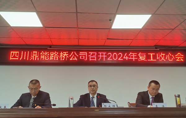 2月19日下午,鼎能路桥公司召开2024年节后复工复产收心会,公司党总支委员、副总经理李涛主持会议,党总支书记、董事长邓永强发表重要讲话。