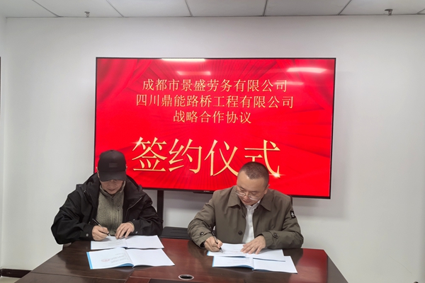 12月11日,鼎能路桥与成都市景盛劳务有限公司正式签署战略合作协议。公司党总支书记、董事长李涛,副总经理(主持经理层工作)吴彬霞,景盛劳务总经理卢坷出席签约仪式。