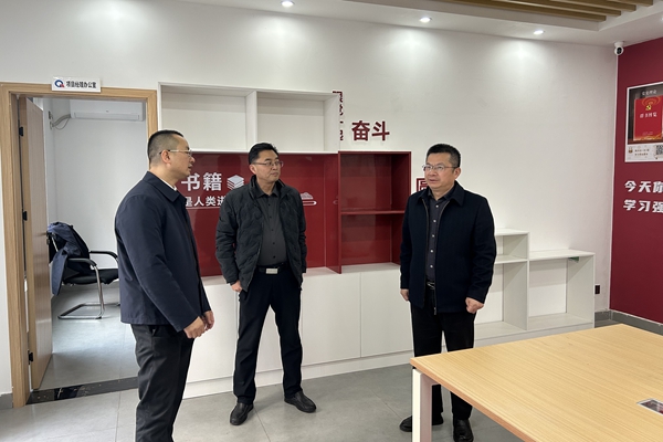 李拥军实地查看了鼎能路桥职工书屋选址、规划布局与建设现状,他对前期建设工作给予了肯定,并强调职工书屋是提升职工素养的重要阵地,需加快完善配套建设:一是深刻把握书屋建设内涵,确保其成为传播党的创新理论、弘扬社会主义核心价值观、凝聚职工奋进力量的精神文化阵地;二是建立健全书屋管理机制,推动管理制度上墙公示,明确管理规范与使用流程;三是优化标识标牌设置,提升空间引导的清晰度;四是联动群团工作,依托书屋积极策划开展多形式读书活动,充分发挥书屋功能作用和服务属性;五是做好书籍分类归档,方便职工快速检索借阅,切实把书屋打造成职工愿来、爱来、常来的“精神家园”。