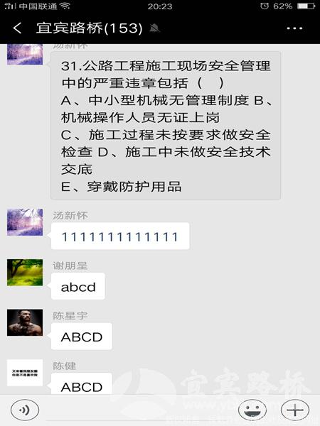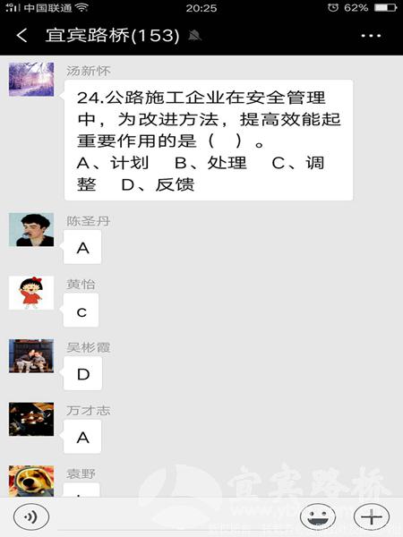 6月20日晚7:00,宜宾路桥微信群里热闹起来,130余名员工在这个平台上开展了一场别开生面的安全知识竞赛,分布在各个建设工地的员工们在手机上抢答完成了100道竞赛题,并角逐出名次,整个过程历时两个半小时。