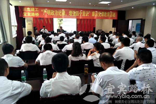为认真贯彻落实上级公司《关于认真开展党风廉洁建设宣传教育月活动的通知》精神,7月18日下午,宜宾路桥、川南建工邀请宜宾市纪委副书记、监察委副主任田永春到公司开展了“严明政治纪律,增强四个意识”廉洁党课教育集中宣讲活动。学习活动由川南建工党委书记、董事长雷敬云主持,两司100余人参加学习。