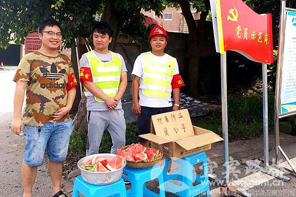 7月18日,宜宾路桥项目管理支部带上清凉解暑的西瓜、藿香正气液等防暑降温用品,到石马溪大桥加固维修改造工程项目工地开展党员送清凉活动,为战斗工地一线的职工送去基层党组织的关爱。