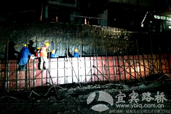 僰王大道为兴文市政PPP项目中的子项目之一,从11月26日正式开启了收尾工程后,所有工作按计划顺利推进,目前,已完成土石方基础施工,进入到挡墙施工的重要阶段。由于该路段施工涉及征拆周边居民院坝3户,施工采取了切割院坝下挖5米与僰王大道已完工路面结构层平齐,在院坝下挖边界浇筑混凝土挡墙的方式进行。为了消除因当前阴雨天气,易造成下挖边坡垮塌的不安全隐患,项目公司牵头项目部、施工班组共同制定施工方案,连夜对挖出的高坡挡墙实施混凝土浇筑,抢建起这道安全挡墙。