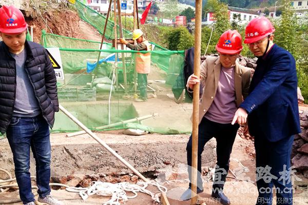 3月21日,宜宾路桥主持经理层工作的副总经理黄木春带队到屏山县境内的S307富荣段滑坡治理工程、中都河大桥整治工程两个项目工地督导安质工作,协助解决施工中遇到的问题,对S307滑坡治理工程项目的卷扬机和桩基锁扣安全隐患提出整改要求。