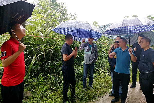 6月17日上午,兴文县九丝城镇政府党委书记李绪带领镇政府主要领导、重点项目办等相关单位负责人组成征地工作协调小组,冒雨深入宜宾路桥承建的兴文县“十三五”脱贫攻坚农村公路九大路项目,就该项目九丝境内征地工作开展现场办公。兴文县交通局、当地村、队、兴文县僰道公司、宜宾路桥项目部等单位主要负责人参加了本次现场办公。