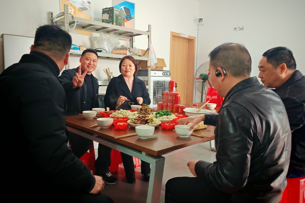随后,在项目驻地食堂,吴彬霞与值班职工携手下厨、共包饺子,热气腾腾的饺子包裹着节日的温情与公司的关怀,进一步拉近了与一线职工的距离,凝聚了团队向心力。就餐结束后,吴彬霞亲手将慰问品送到一线扫地车操作师傅等值守人员手中,细致询问大家的值守安排、后勤保障等情况,反复叮嘱大家要做好自身防护,严守安全生产底线,做到值守尽责、劳逸结合。