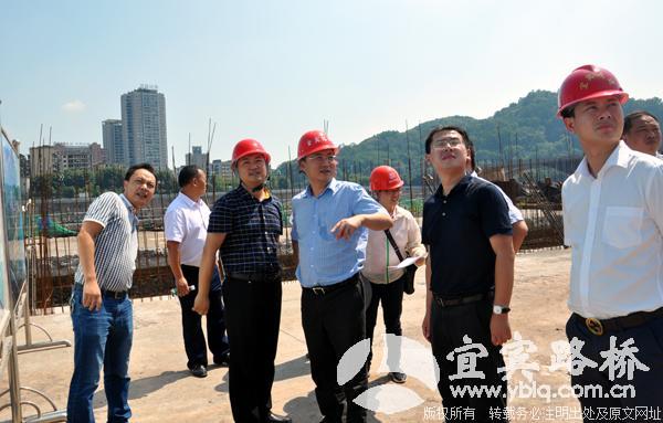 8月17日,四川省住房和城乡建设厅副厅长石钢到宜宾路桥在建工程项目起步广场工地调研,实地查看工程的实施,了解全市重点工程项目的开展。宜宾市政府副秘书长江波、翠屏区政府副区长吕大伟随同调研。
