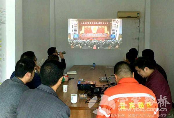 10月18日,宜宾路桥党总支组织全体职工收看中国共产党第十九次全国代表大会开幕会,聆听习近平总书记在大会上作主题为“不忘初心、牢记使命,高举中国特色社会主义的伟大旗帜,决胜全面建成小康社会,夺取新时代中国特色社会主义的伟大胜利,为实现中华民族伟大复兴的中国梦不懈努力”的报告。公司所属各子分公司、项目部和基层支部在安排好安全生产的同时,同步收看了开幕会,第一时间了解国家治国理政思想和方略。