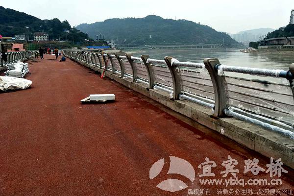 12月20日,江边的初冬虽寒气袭人,但宜宾路桥起步广场项目部工地新铺筑的骑行道上却热闹繁忙,几十名工人分成了几个作业点,紧张有序地开展着最后阶段的工程施工。
