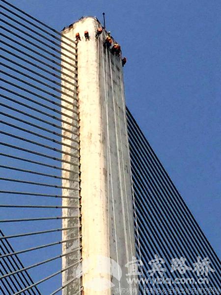长江桥涂装亮化工程由于高空作业面多,需要搭建的脚手架、安全通道和高空防护设备亦多。介于长江桥白天车流量大,行人通行较多,为了保持交通畅通,不影响车辆和行人通行,项目部对施工生产组织进行了因地制宜的安排部署。自1月初开工以来,项目部全体员工便不分白天黑夜地忙活起来,白天安排班组开展现场脚手架的搭建、桥面门洞加固,高空作业牵引绳安装,并趁着近日天气晴朗,负责高空作业的蜘蛛人已开展了对100多米的桥塔涂装工作。为了科学有效地抢抓工期,项目部在夜晚11点后在车少人稀时开展材料的运输装卸,布置拉钢绳和安全防护蓬布的安装,夜以继日地进行安全生产,为第一阶段的任务完成全力以赴地开展工作。