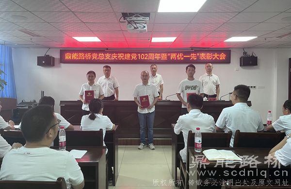 7月20日,鼎能路桥党总支召开”两优一先“表彰大会,庆祝中国共产党成立102周年,表彰优秀共产党员、优秀党务工作者和先进基层党支部。公司党总支书记、董事长邓永强出席会议并讲话。会议由党总支委员、财务总监蹇荣主持。