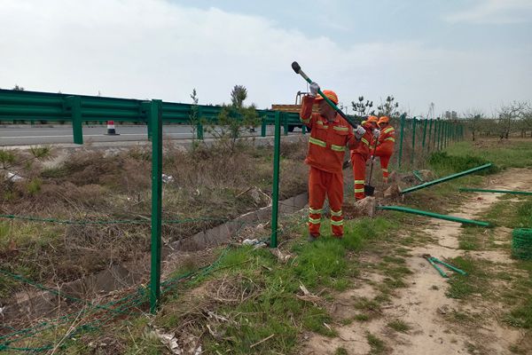 项目部经过前期的现场勘察和规划后,制定了科学合理的作业方案。在更换过程中,养护作业人员严格按照相关的技术标准及要求,对老旧、损坏的隔离网栅进行了拆除,并更换安装了全新的高质量网栅。新网栅具有更高的强度和耐久性,能有效地防止动物和行人闯入高速公路,减少交通事故的发生。