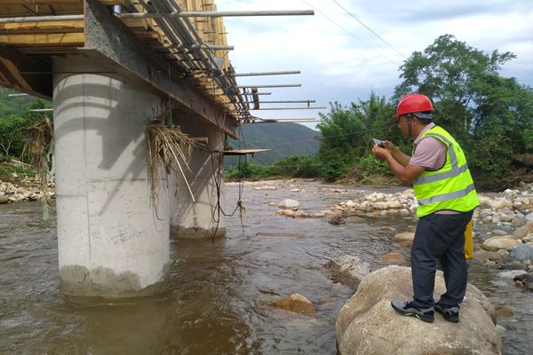 6月12日,新平彝族自治县交通运输局法规安全股股长颜忠达到鼎能路桥新平县2023年农村公路通行能力提升改造项目(一期)的水塘镇丙坡2#桥项目现场开展了防汛减灾隐患排查工作。