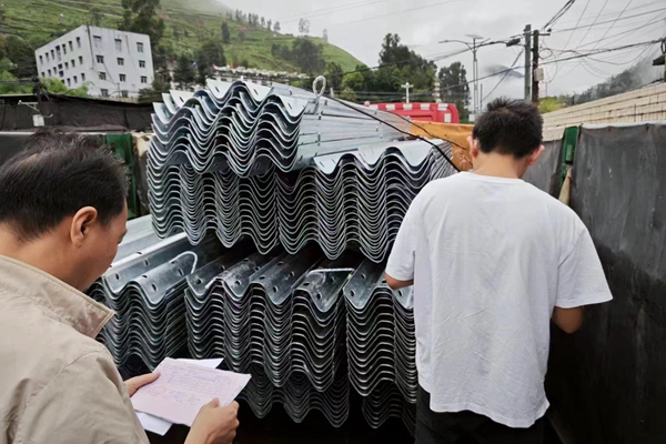 检测现场,检测人员严格根据国家标准要求,对到场的各类材料进行全面细致的检测和数量核准,包括镀锌层厚度、波板规格尺寸等项目,保证进场材料均符合国家标准要求,目前未发现不符合要求的材料。
