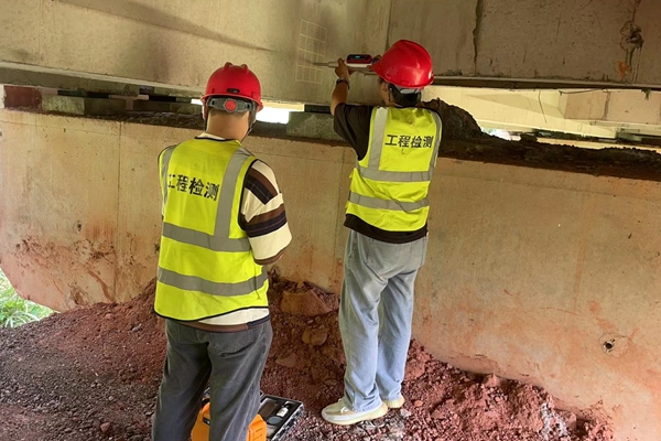 在检测过程中,工作人员以严谨的态度和专业的精神,不畏炎炎烈日,爬上高高的桥梁梁体,深入狭窄的涵洞内部,全力确保每一项检测数据的准确性和可靠性,项目部全体成员也全力配合本次检测工作。通过细致的检查和精确的测量,帮助项目部及时发现潜在的安全隐患,为后续的维修和加固提供了科学依据。