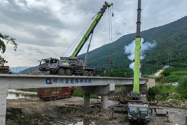 据介绍,丙坡2号桥桥梁全长52m,上部结构为2-20m预应力混凝土简支T梁,共计8榀,桥面连续。