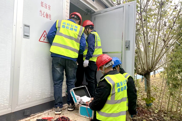 为保障产业大道供配电系统安全稳定运行,及时排查管养路段电力设备隐患,12月20日,鼎能路桥高新区管养项目部组织开展产业大道电力设备预防性试验及维护工作。